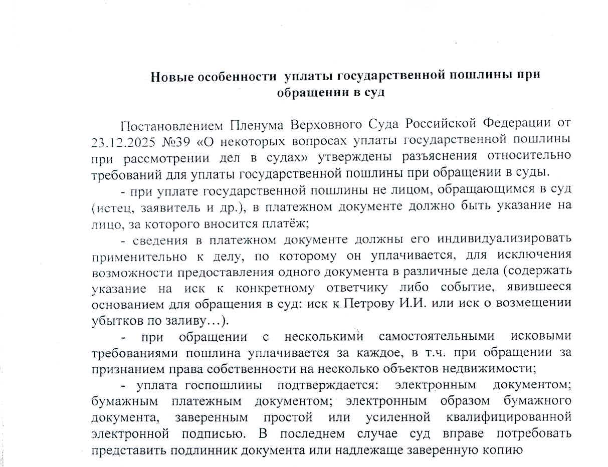| Новые особенности уплаты госпошлины при обращении в суд | версия для печати |